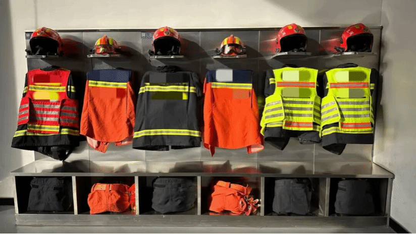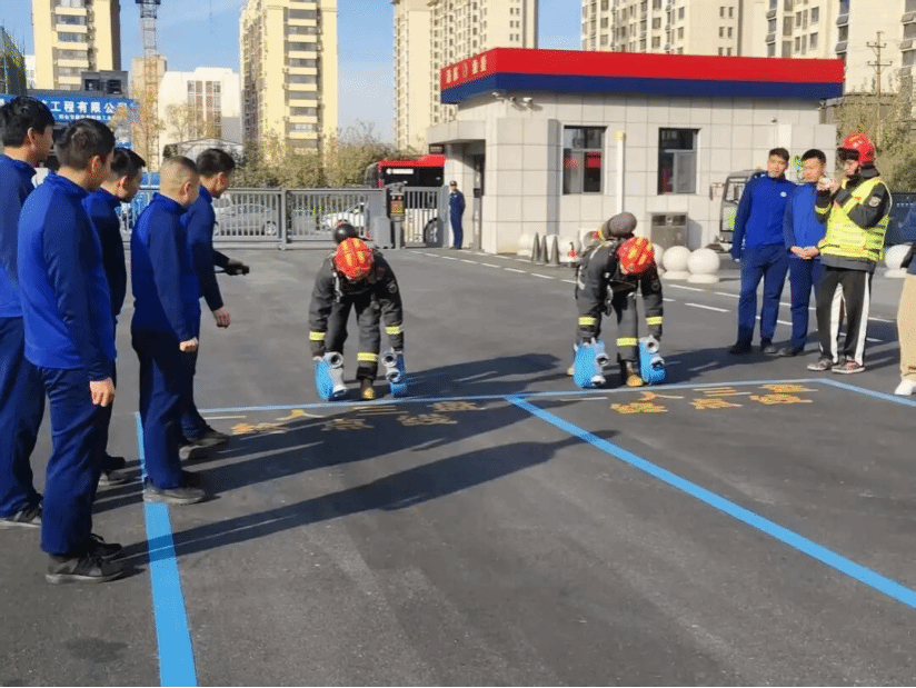 来到装备区,消防服、头盔、破拆工具等整齐陈列,消防员详细介绍各类装备的功能和使用方法,还热情邀请同学们试穿消防服、佩戴头盔。两名试穿装备的同学在消防员指引下进行赛跑,厚重的装备让他们深切体会到消防员执行任务时的负重与艰辛,围观师生纷纷鼓掌点赞。