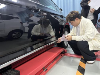 活动分为“知识竞赛”与“实操考核”两部分。知识竞赛以检查工单内容为题库,题目涵盖“VIN码的两个关键检查标准”“制动液正常颜色与异常状态判断”“举升机支撑点选择依据”等实操性问题,学生需在规定时间内完成作答,检验对工单标准的理论掌握程度;实操考核则模拟真实车辆检查场景,学生需独立完成“基础信息与标识检查—外观与车身结构检查—油液与机械部件检查—功能与设备检查—安全与环保检查”全流程操作。